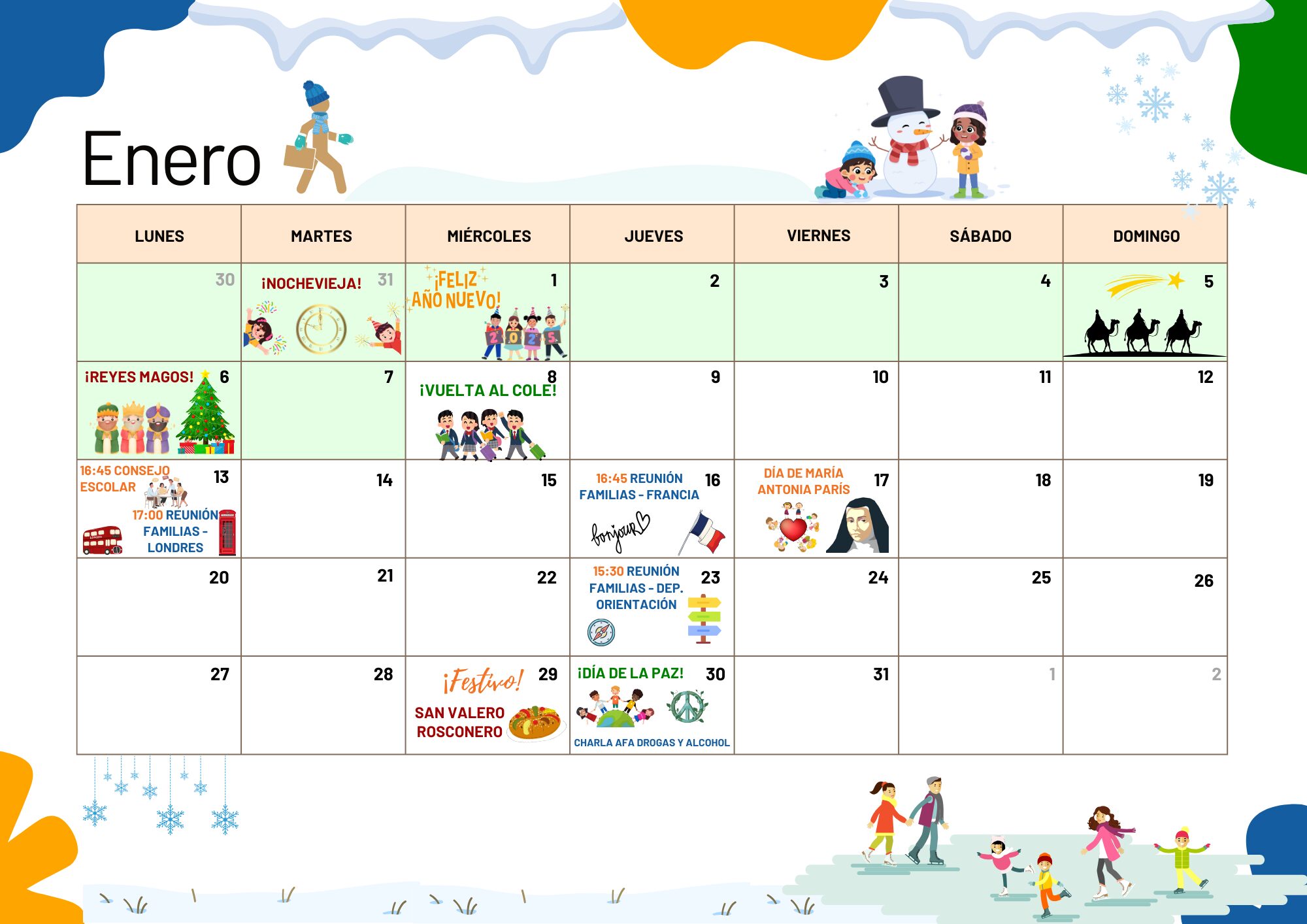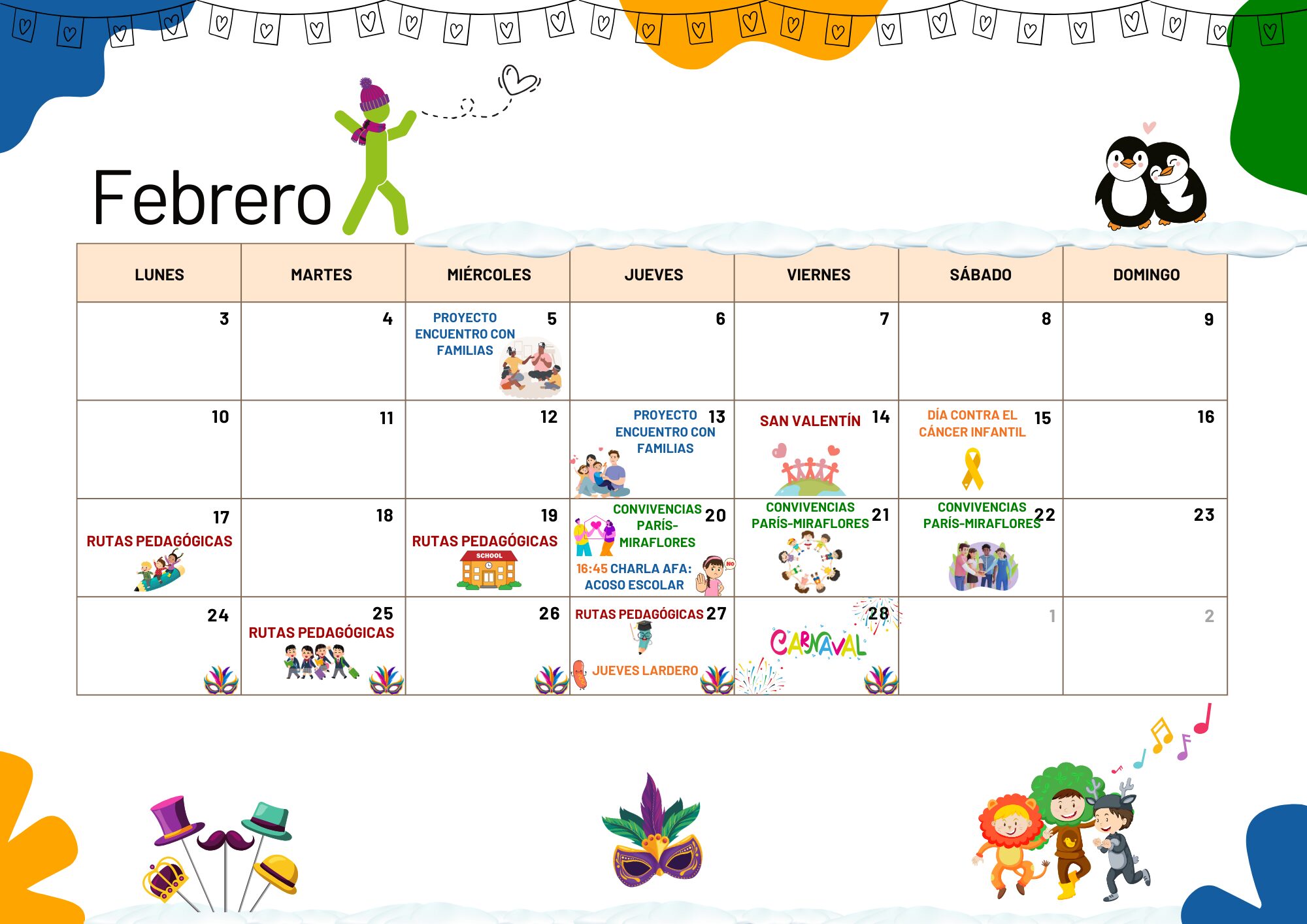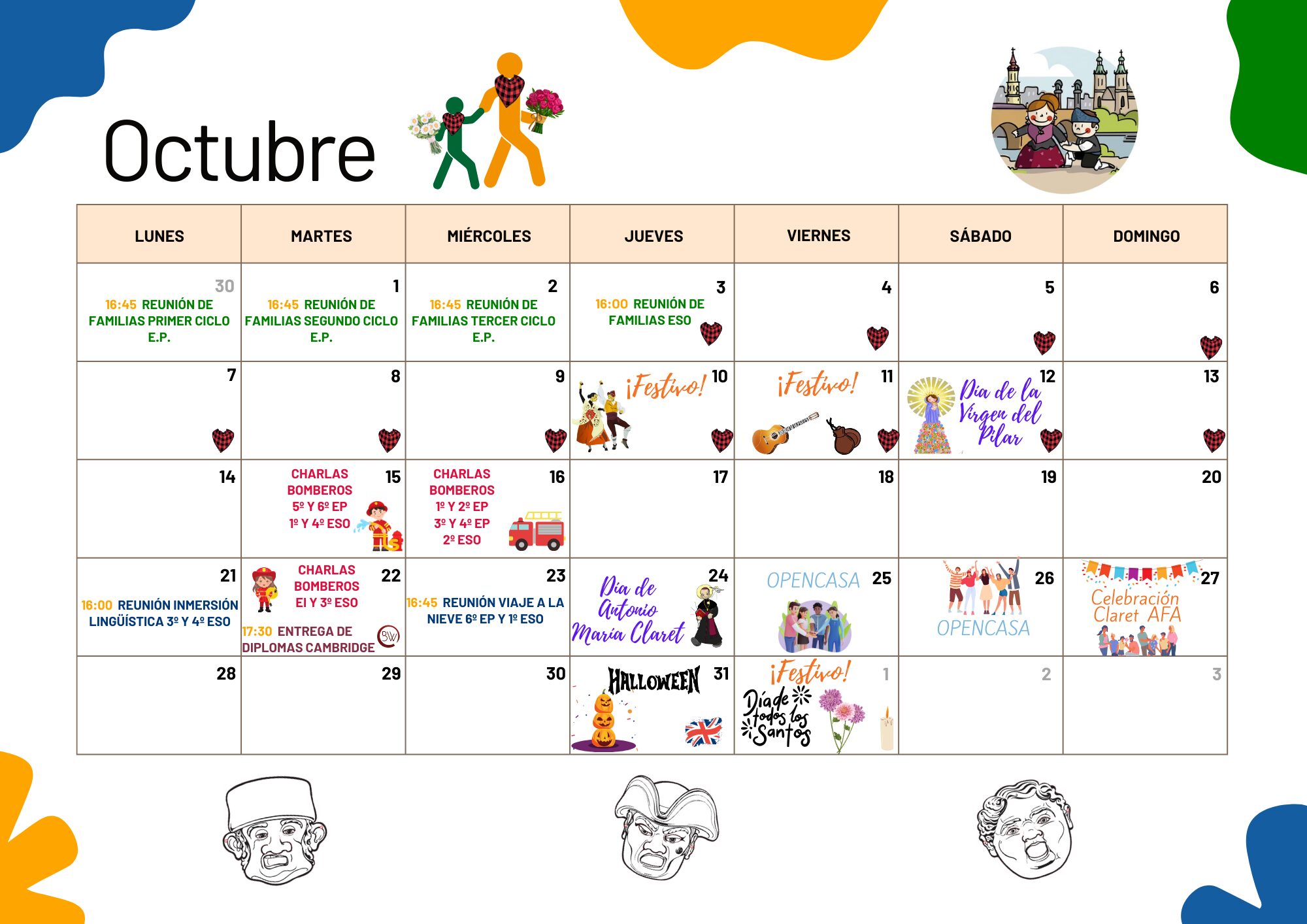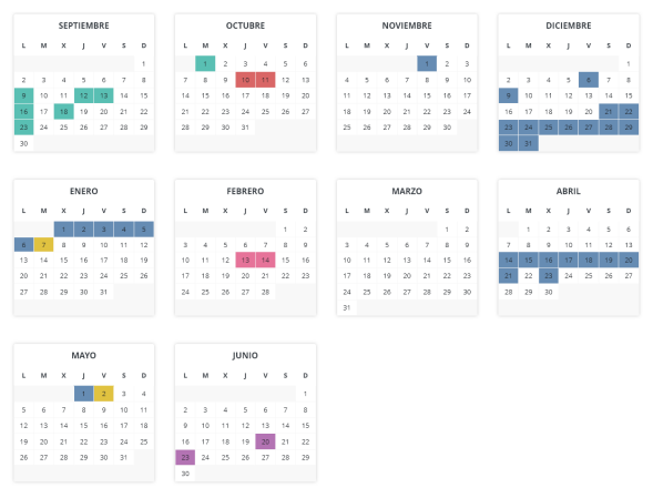 Hasta el día de hoy, las fechas coloreadas que figuran en el calendario son las festividades. Como siempre, habrá modificaciones a lo largo del año porque están pendientes las municipales y nacionales del año en curso. Les mantendremos informados.